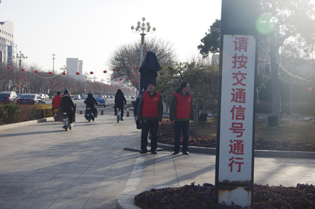 早上七點半,我所的志愿者們,準(zhǔn)時到達(dá)東三路和府前街路口,開始了早高峰的文明引導(dǎo)活動。志愿者手持引導(dǎo)過往行人和非機(jī)動車輛遵守交通秩序,文明通過馬路。在寒風(fēng)凜冽的冬日里,志愿者們不斷給予行人溫馨提示,讓早高峰的府前街路口變得井然有序。